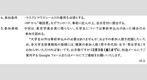 ・事前申し込み不要・参加費用無料、東京学連剣に未登録の方でも参加OK。